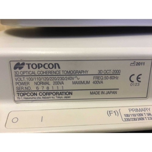 - Product Code: Topcon 3D OCT 2000 Optical Coherence Tomography