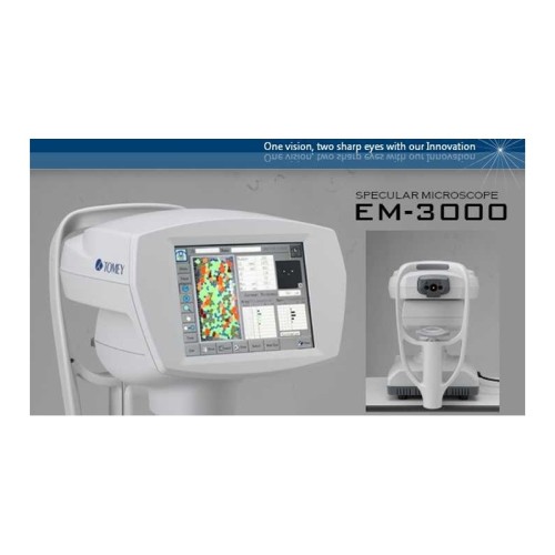 The EM-3000 is an 'all-in-one' specular microscope which includes an inbuilt program to automatically analyze pictures of corneal endothelial cells, thus allowing doctors too readily perform automatic analyses without the use of a personal computer